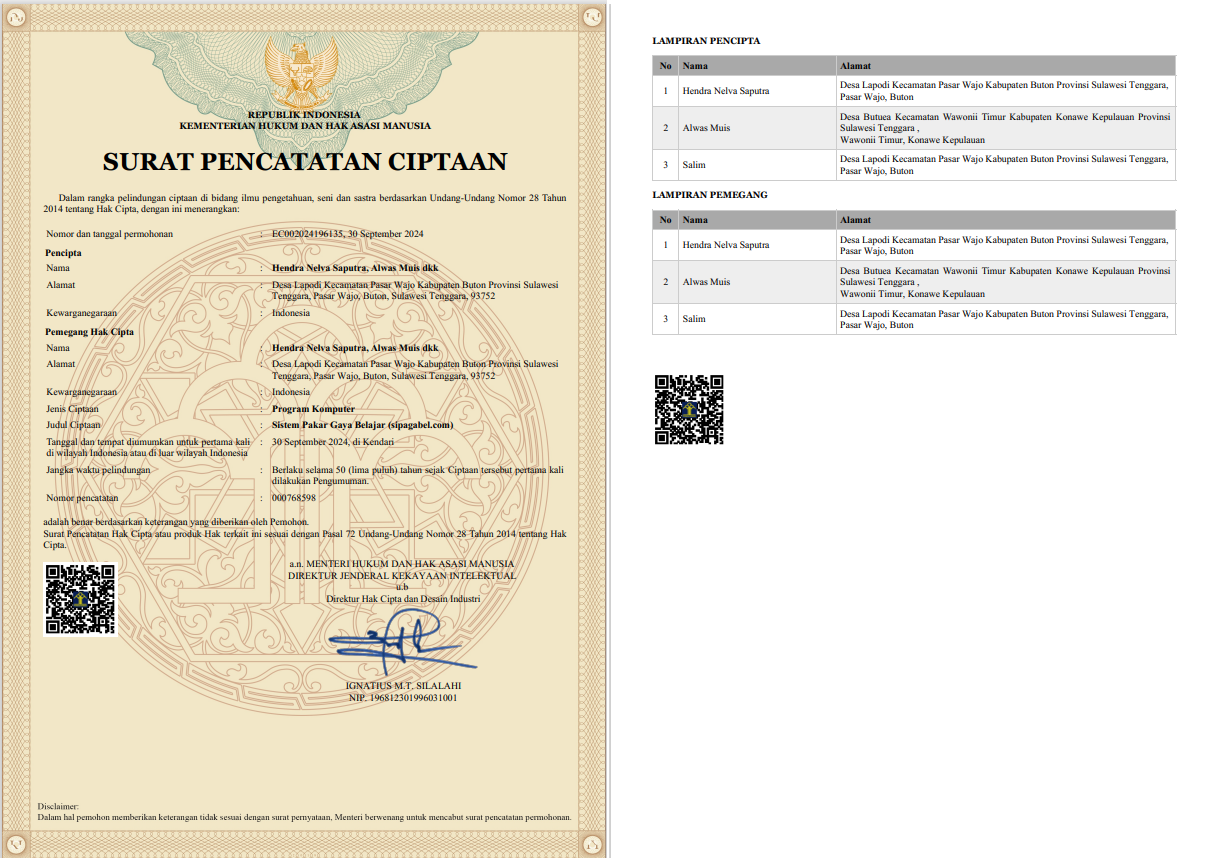 Sistem ini mengumpulkan data melalui kuisioner untuk menganalisis preferensi belajar seseorang. Informasi ini dapat digunakan untuk menyesuaikan metode pengajaran atau pembelajaran, sehingga dapat meningkatkan efektivitas belajar dengan menggunakan strategi yang sesuai dengan gaya belajar masing-masing individu.